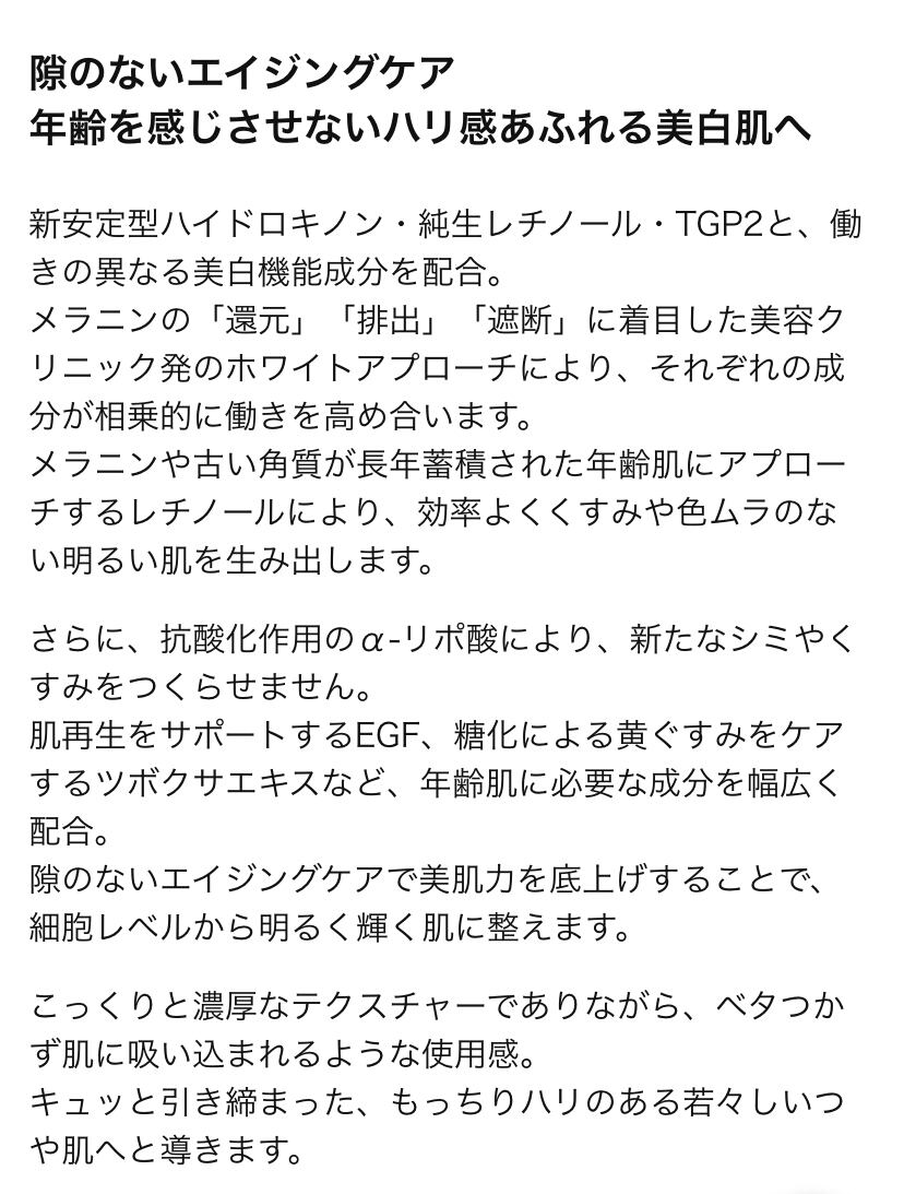 純正レチノール・新安定型ハイドロキノン・TGP2と働きの異なる美白機能成分を配合!